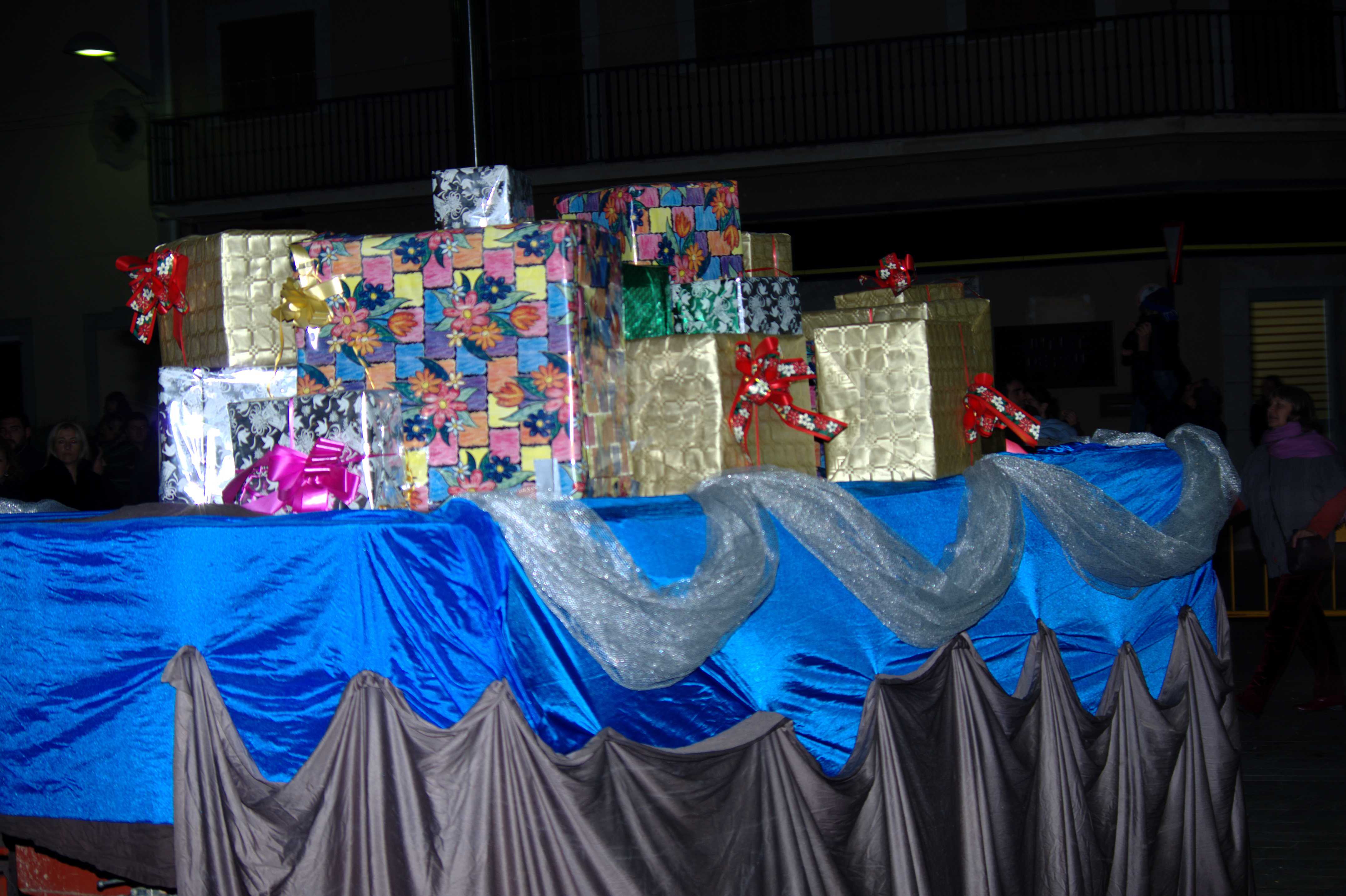 En acabat, es dirigiren a la carpa situada a la Plaça Nova i feren entrega dels presents als nins i nines que havien fet bonda i del carbó corresponent als que no n’havien feta gens (em comentaren que en donaren poc de carbó enguany).