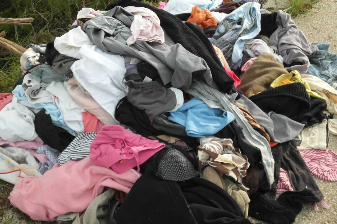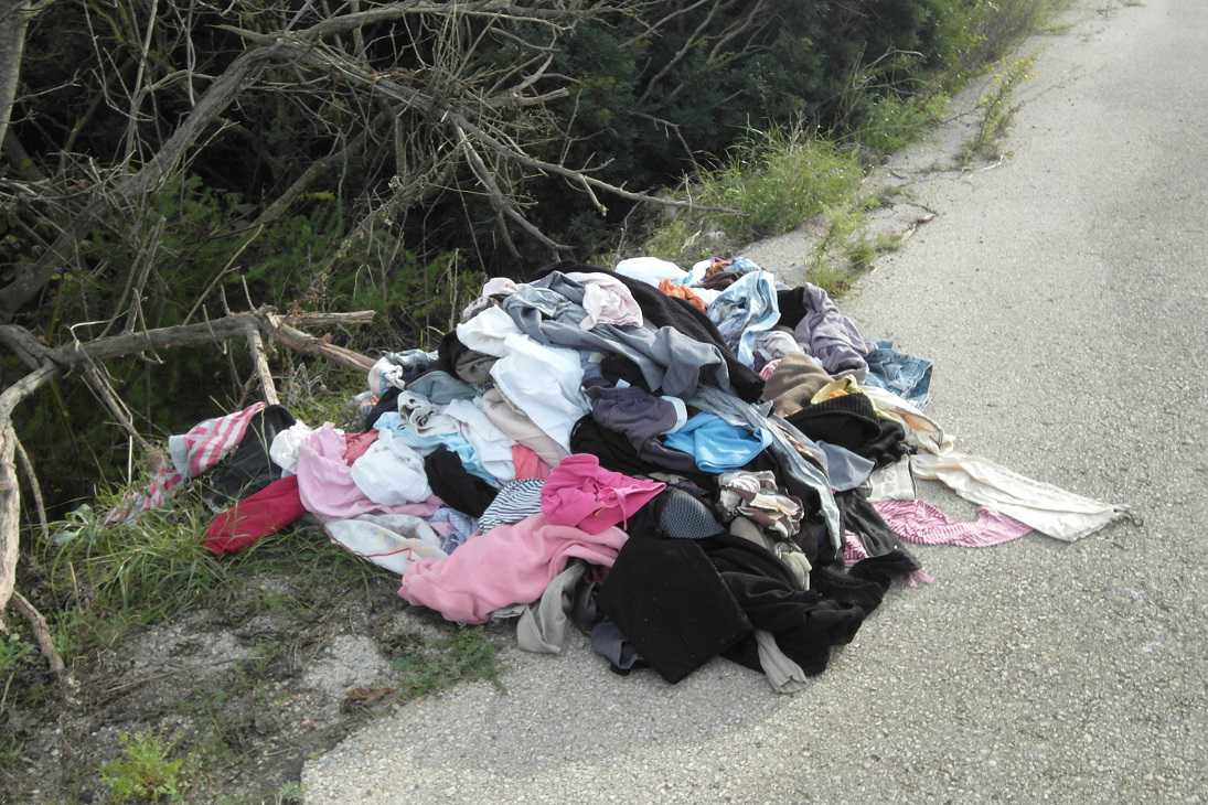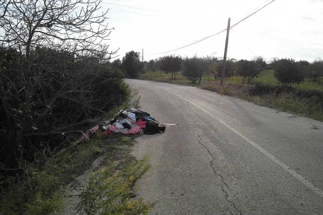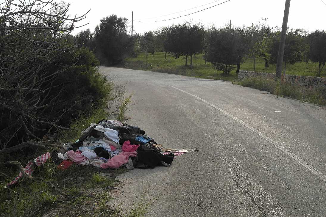No, no és una foto de cap mercat al carrer; tampoc és una parada de càritas (a pesar que algun espavilat s’ho pensàs); ni tan sols hi ha a prop cap contenidor ni punt verd, senzillament és el caramull de roba que algú (per anomenar-lo d’alguna manera) es deixà ben enmig de la carretera vella de Son Vives.