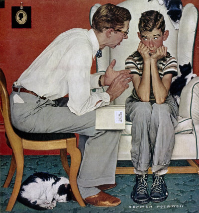 Norman Rockwell va néixer el 1894 i va morir al 1978. És a dir gran part de la seva obra va cobrir el segle XX. Ell era tant fotògraf, com pintor i il·lustrador (va elaborar moltes de les portades de l’època) i la seva obra es caracteritza pel seu realisme (a vegades costa discernir si són dibuixos o fotografies) que acompanya de cert humor i ironia.