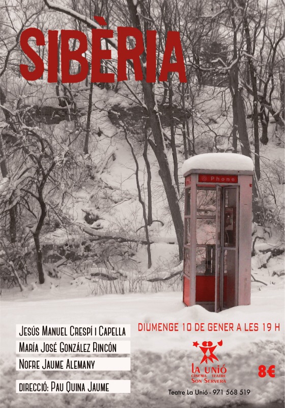 Com que ja ha acabat Nadal i el fred encara no ha fet acte de presència, nosaltres des de Sibèria ens encuidarem de dur-lo; així que posau-vos els abrics que tan cars vos van costar i quasi no duis i veniu el proper diumenge, 10 de gener, a les 19 h al teatre de Son Servera. Hi viureu una experiència única!