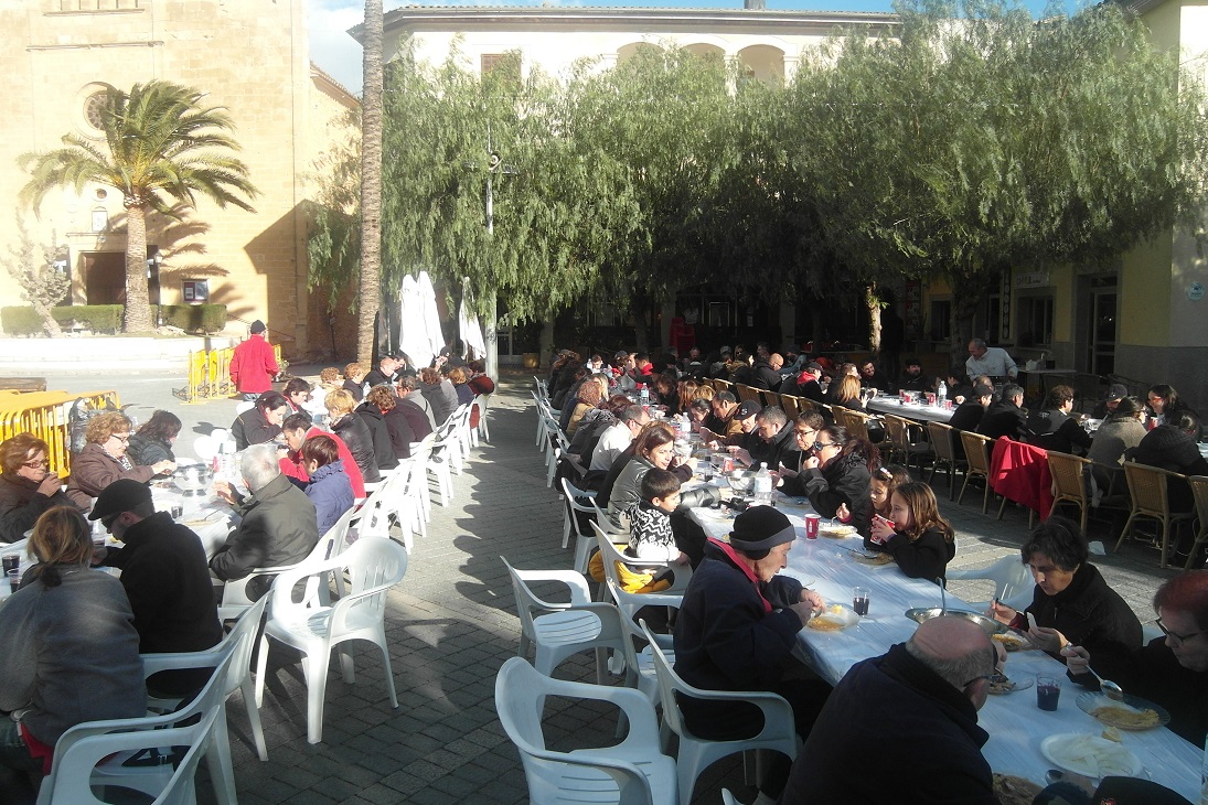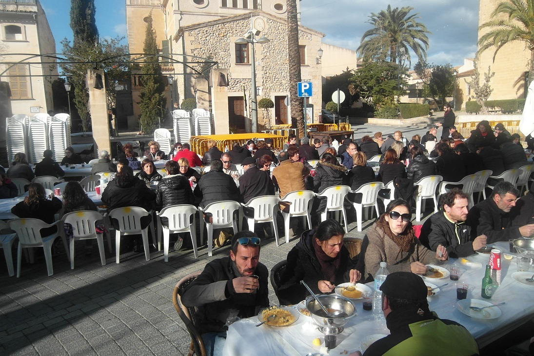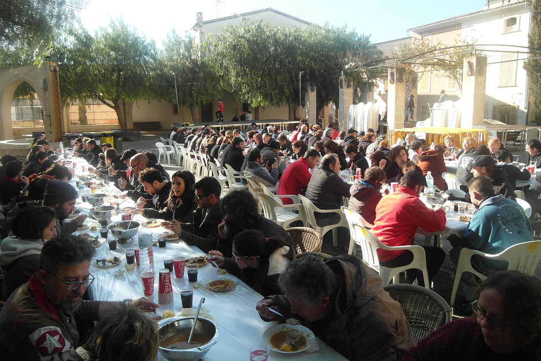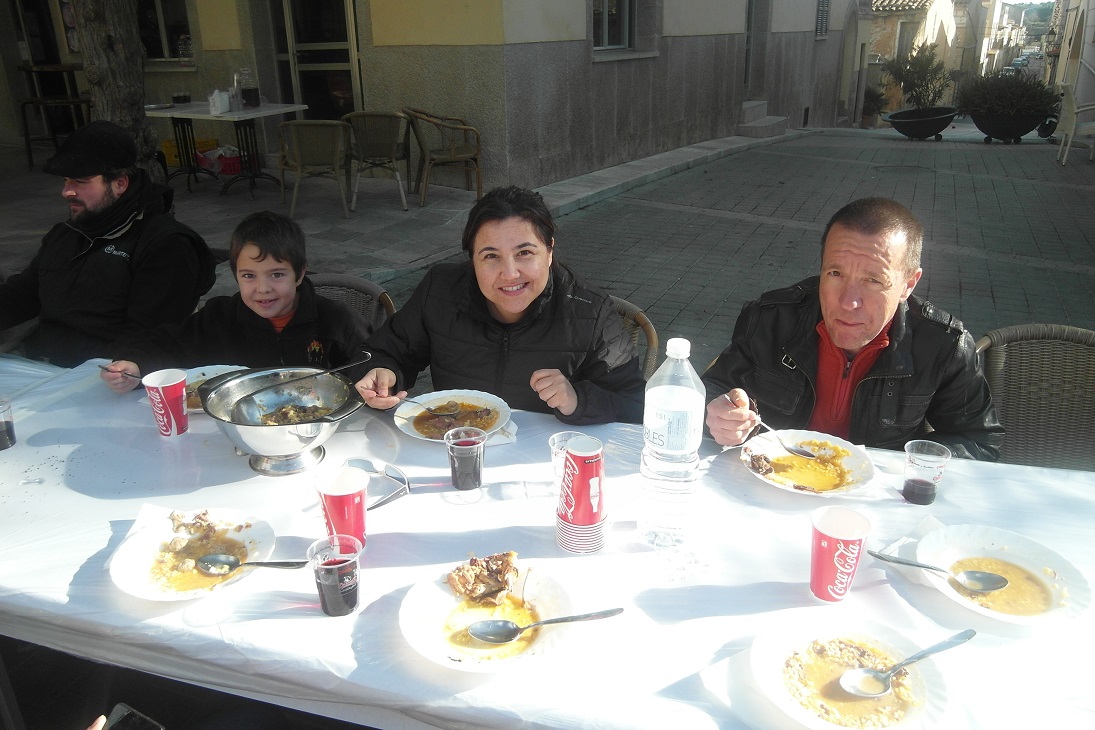 Unes 160 persones s’han reunit, a pesar del fred i del vent, a dinar al bell mig de la plaça. L’arròs brut d’en Martí Mec ha estat ben bo i agraït per escalfar-nos un poc el cos (això i les herbes, és clar).