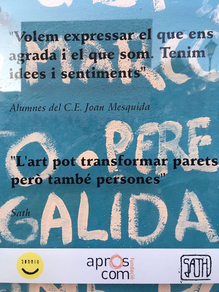 El mural és un projecte ple de històries, i somriures de solidaritat que ha estat possible gràcies a l’artista serverí Sandro Thomàs “Sath”, el projecte dibuixat amb la cara d’una alumne serverina del centre Aproscom, Xisca Ballester, i en el qual participaren alumnes d’Aproscom.A la inauguració assistiren a més de les autoritats serverines, representants de la Fundació d’Aproscom, serverins i nombroses persones de la comarca de Llevant.
