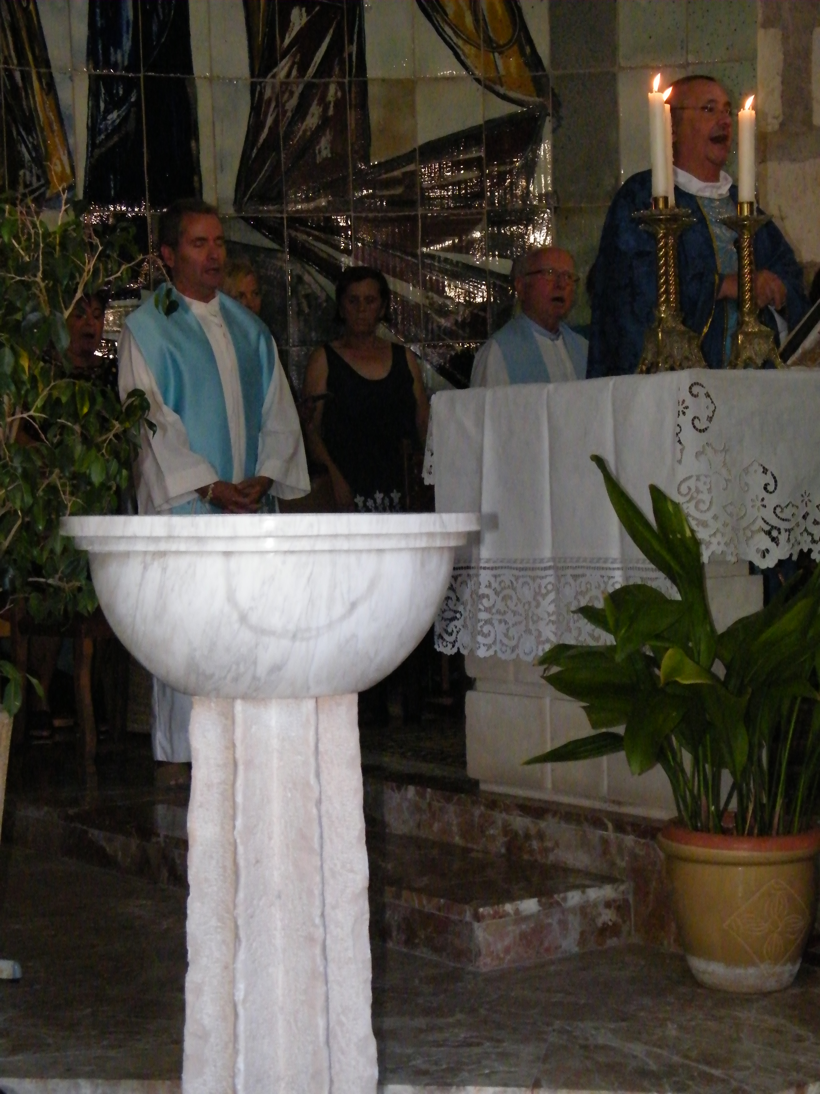 La missa, concelebrada per Mn. Juan José Lamedo, Fra Antoni Riera, i el rector Fra Pere Vallespir, va començar a les 18 hores, i en el transcurs de la mateixa es va beneir una pila baptismal regal d’uns feligresos, ja que una gerra i una palangana que es feia servir per celebrar el sagrament del Baptisme no complia les normatives eclesiàstiques.