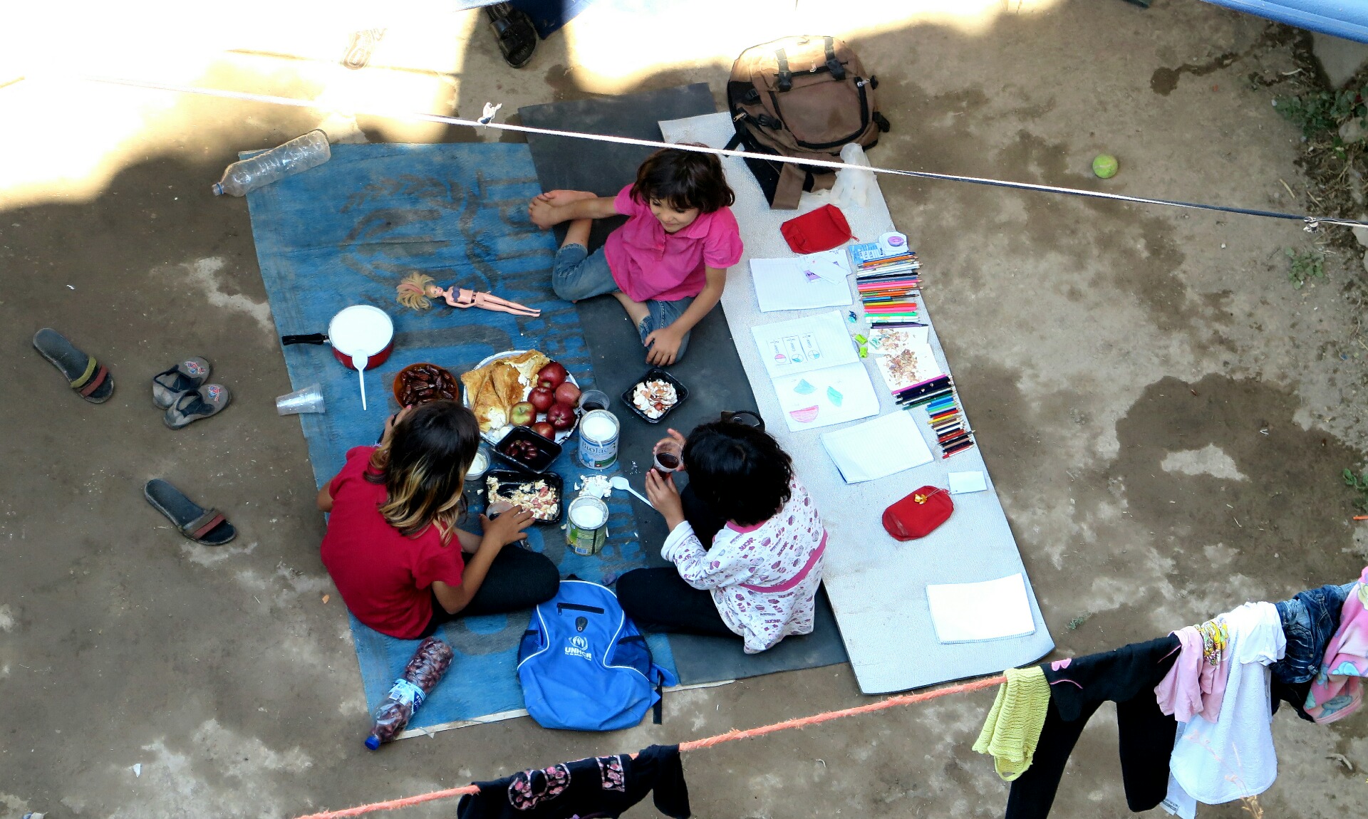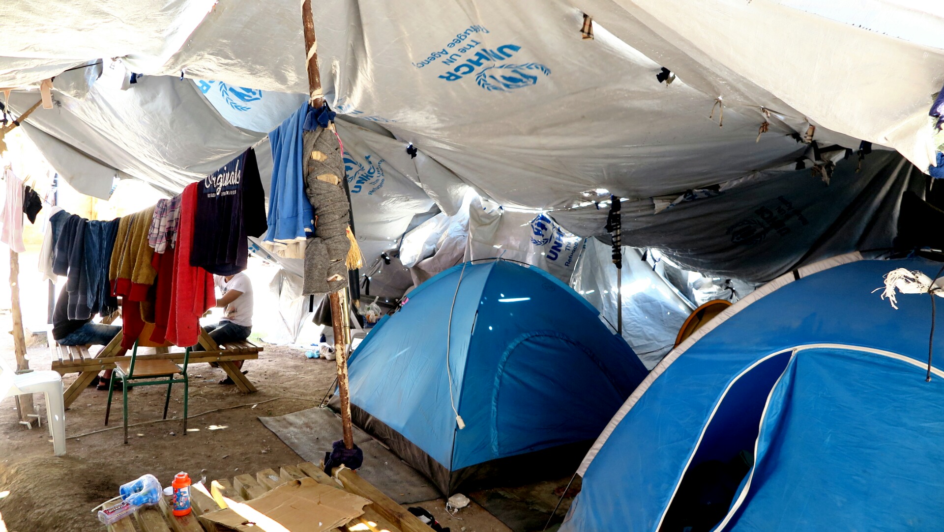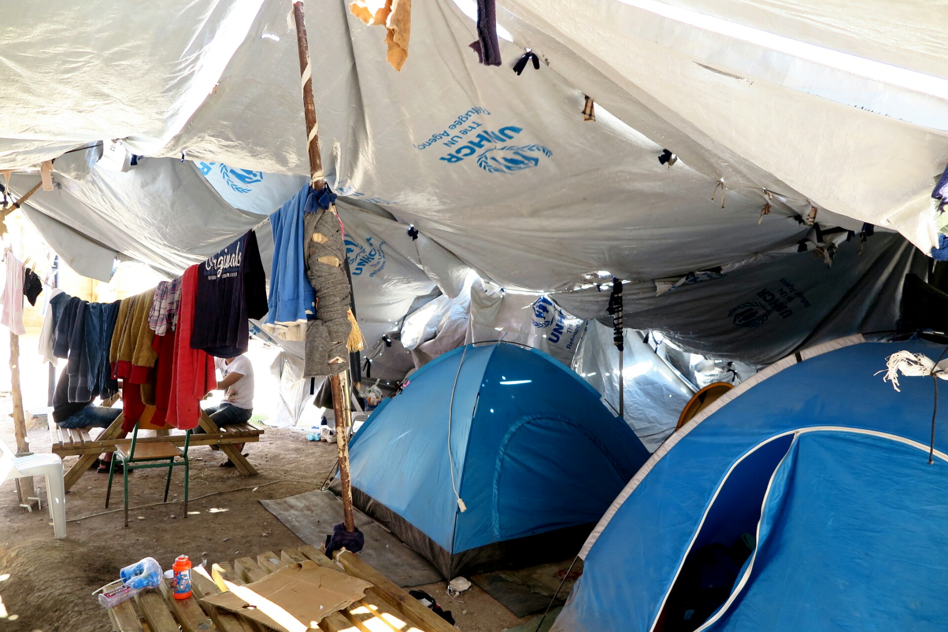 Un dia vàrem visitar Vial, l’únic camp teòricament oficial i militaritzat de l’illa. Ens van negar el pas perquè no disposàvem d’un permís del Ministeri de Defensa grec. Vam rodejar el camp enreixat fent fotos i vídeos i entre d’altres coses, vam trobat forats a les reixes de ferro fets per les persones que hi viuen per poder escapar-se o una pintada que diu «No food, No water». Teòricament, en un camp oficial és on les necessitats bàsiques estan més cobertes i les institucions destinen els diners, però en aquest cas realment és on les condicions són més deplorables. Al cap d’una estona, dos policies de males maneres ens van dir que no podíem fotografiar el lloc.