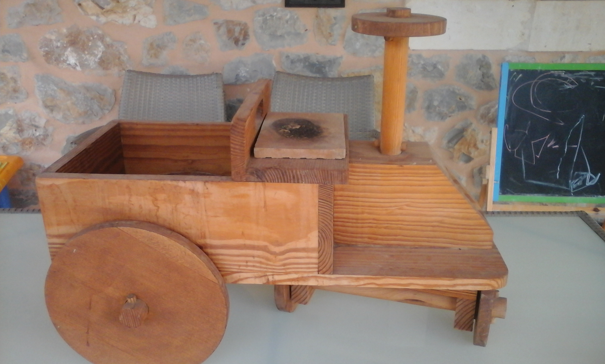 No som cap pare alternatiu que no deixa jugar els seus fills amb artefactes moderns (pepes de moda, cotxets, patinets, productes Disney…), però he de reconèixer que quan gaudesc més de veure jugar les criatures és quan usen els mateixos artefactes que usava jo fa 25 35 anys i que encara ara conserv. A més, tenen aquest regust casolà, ja que foren creació de mon pare, Guillem Quina (fuster), i en Pep Cortès Mosca (multiusos).