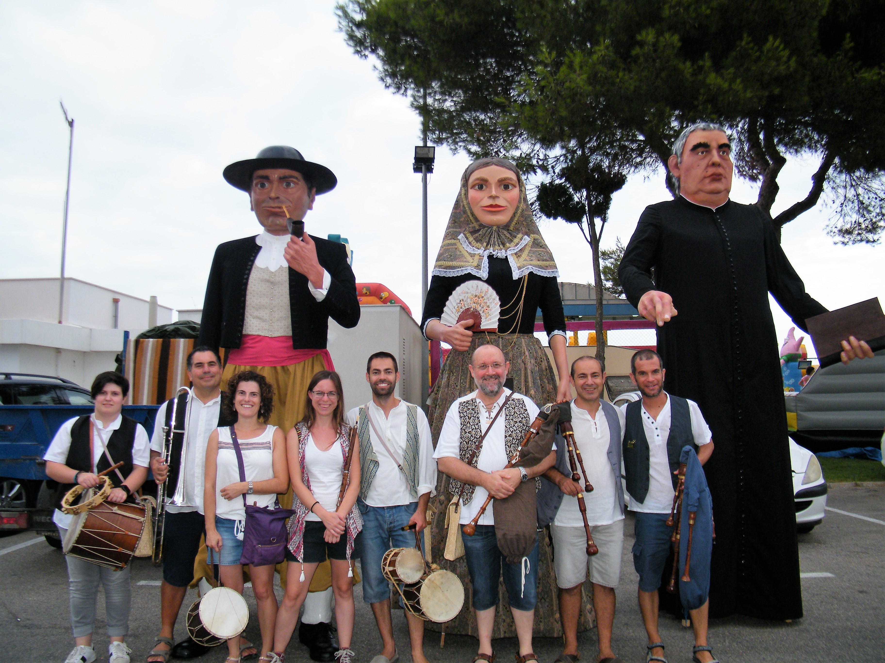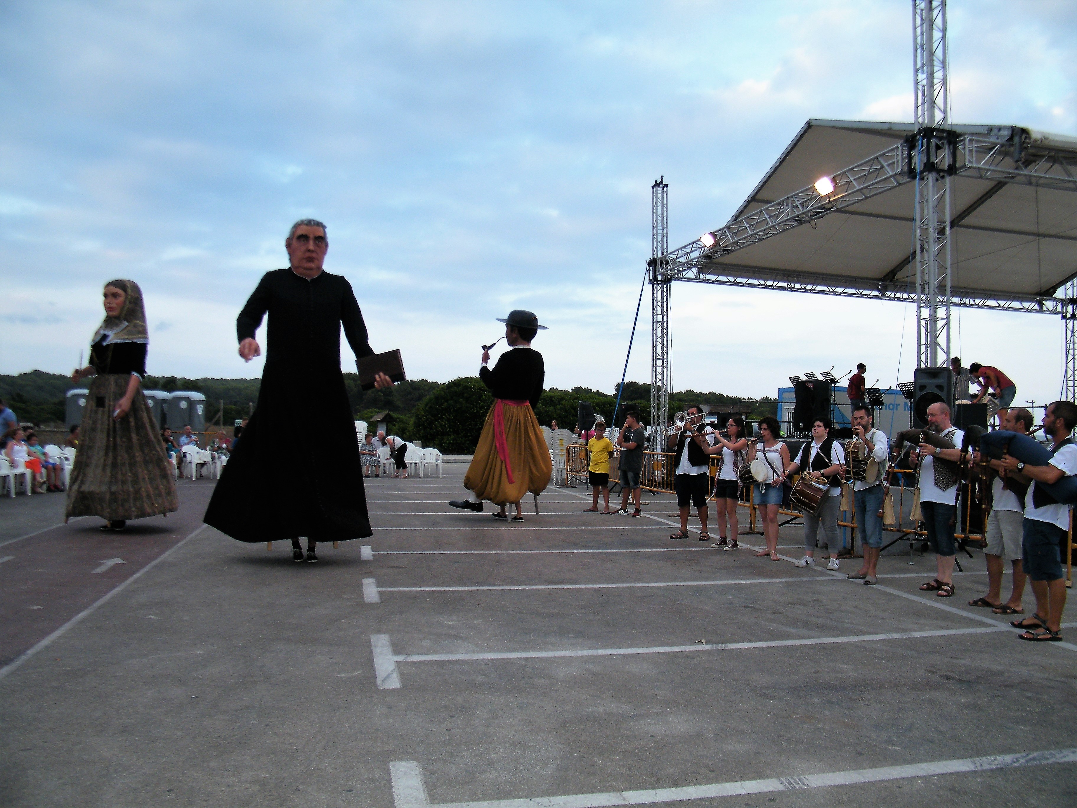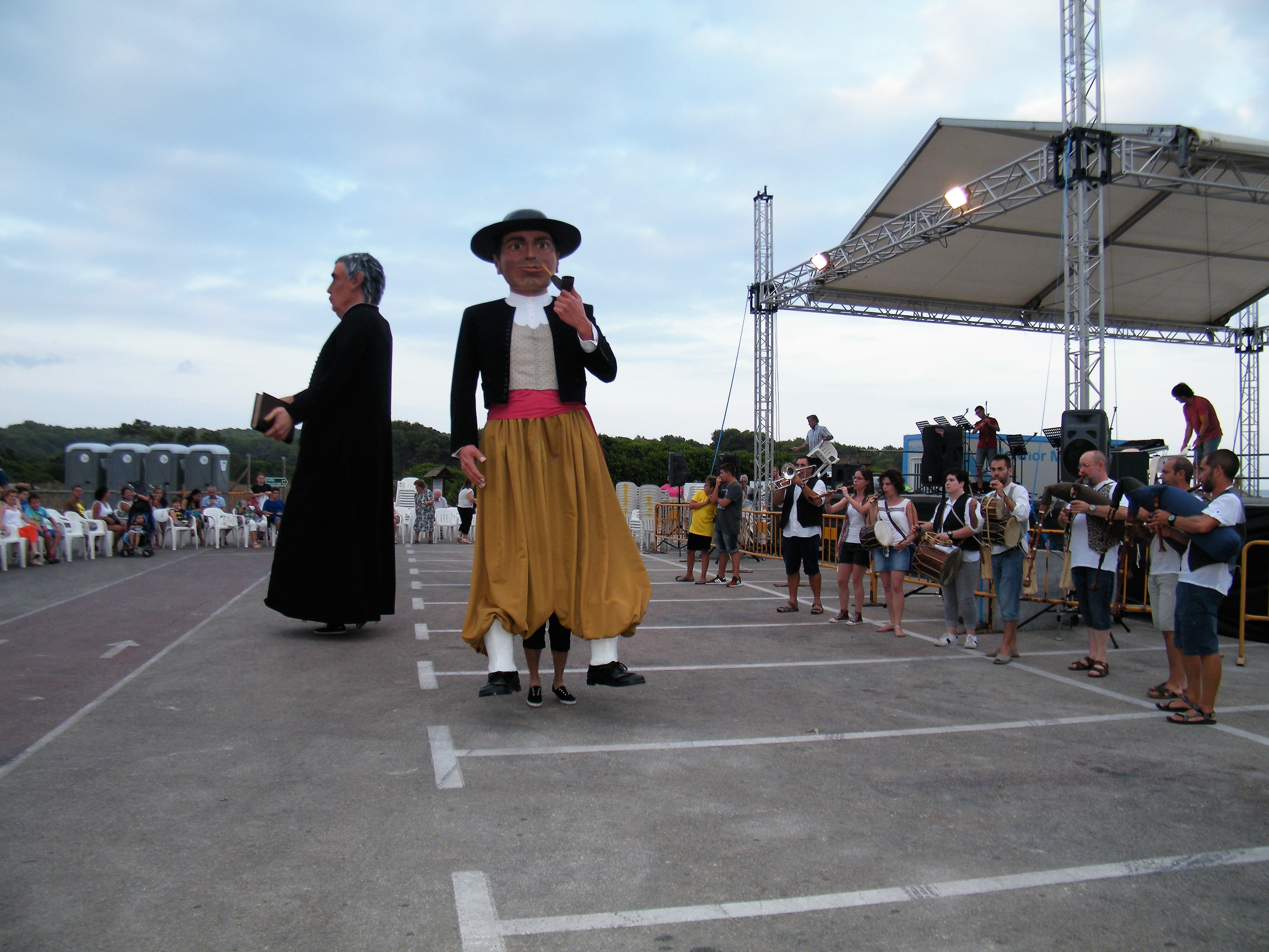 Els gegants Jaume Belluguins i Angelina Trebolina, acompanyats de mossèn Salvador Galmés inauguraren la primera Nit Multicultural de les Festes de sa Coma