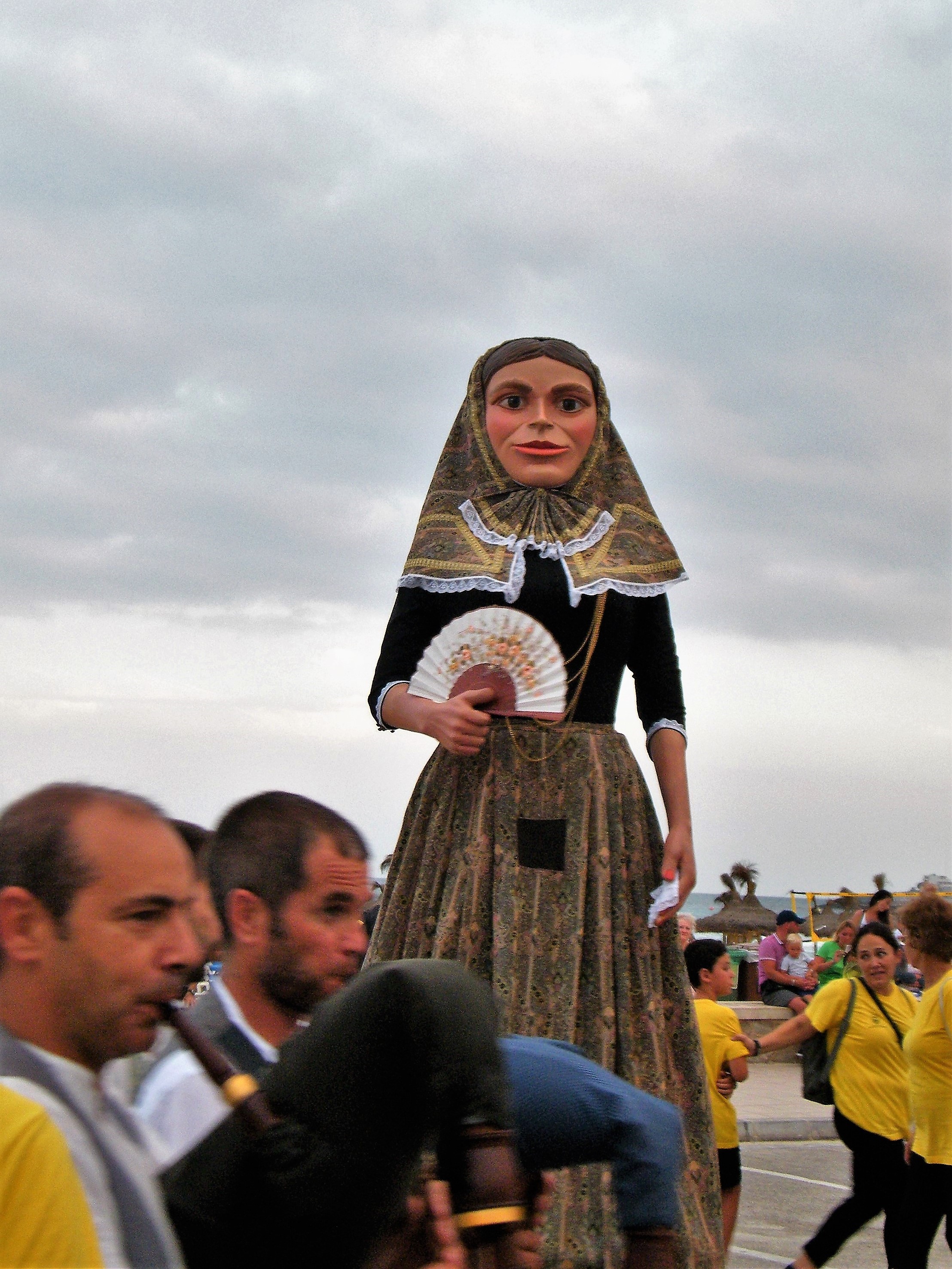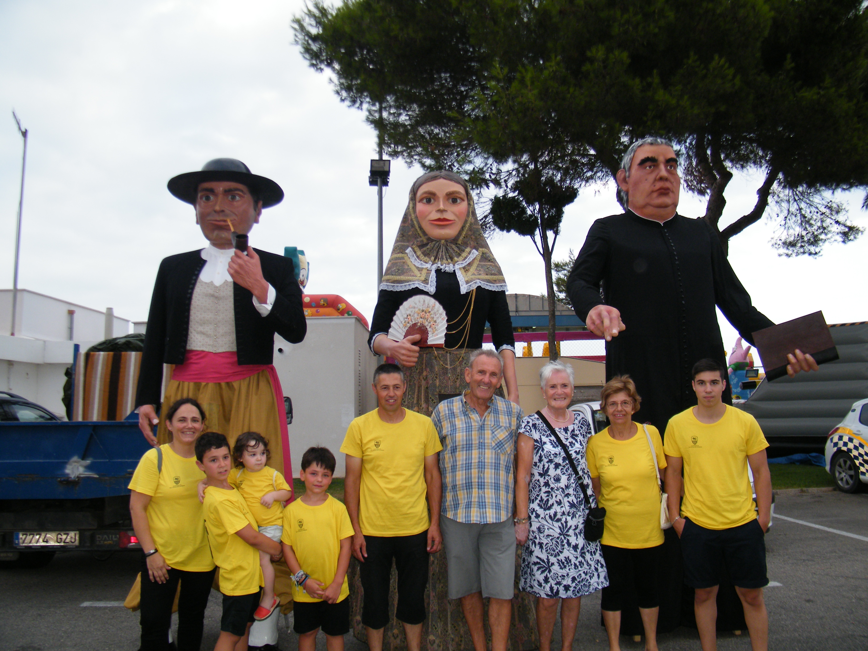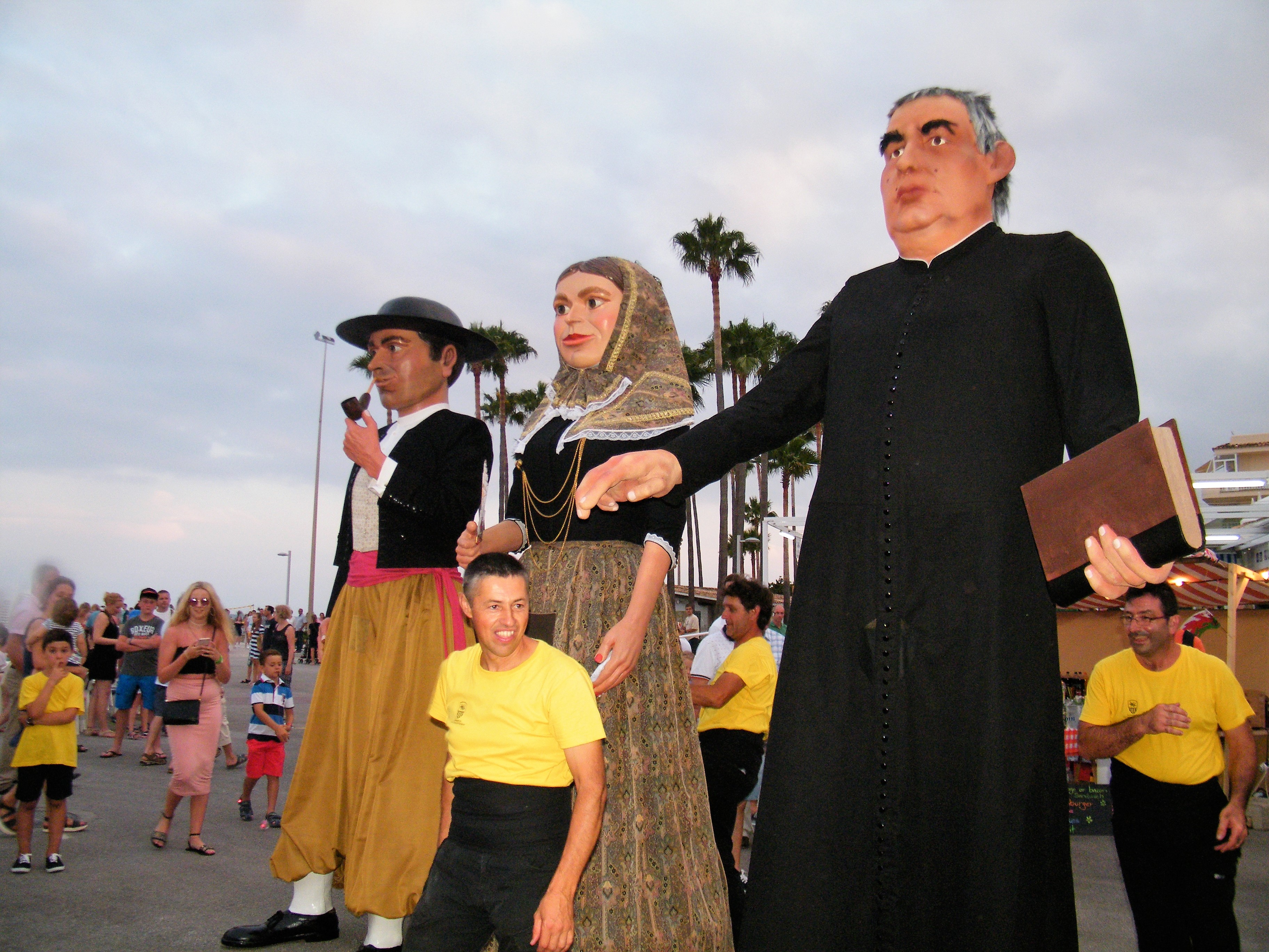Els gegants Jaume Belluguins i Angelina Trebolina, acompanyats de mossèn Salvador Galmés inauguraren la primera Nit Multicultural de les Festes de sa Coma