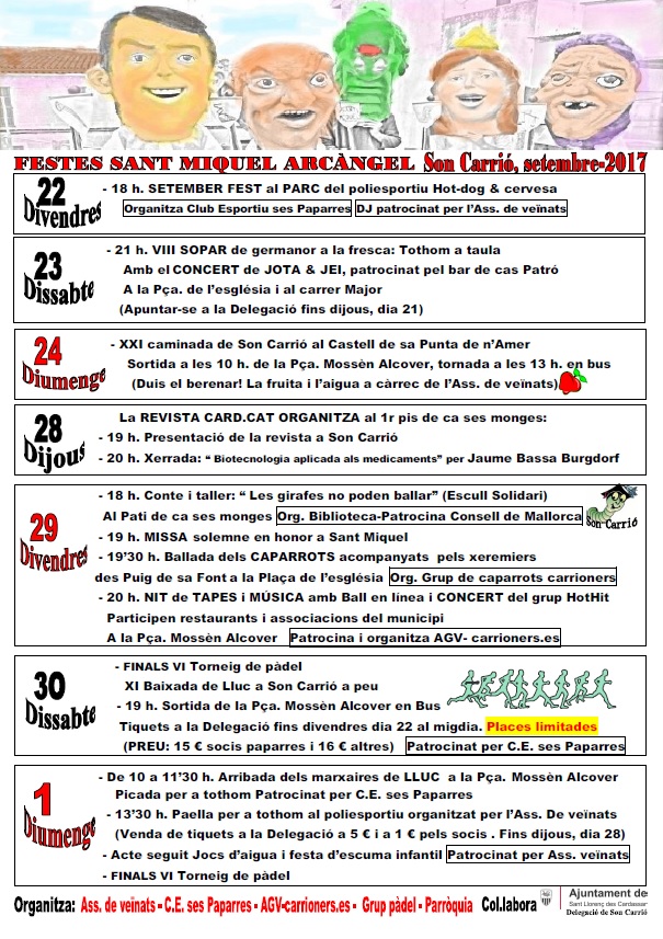 A continuació podeu consultar el programa de Festes de Sant Miquel Arcàngel de Son Carrió 2017.