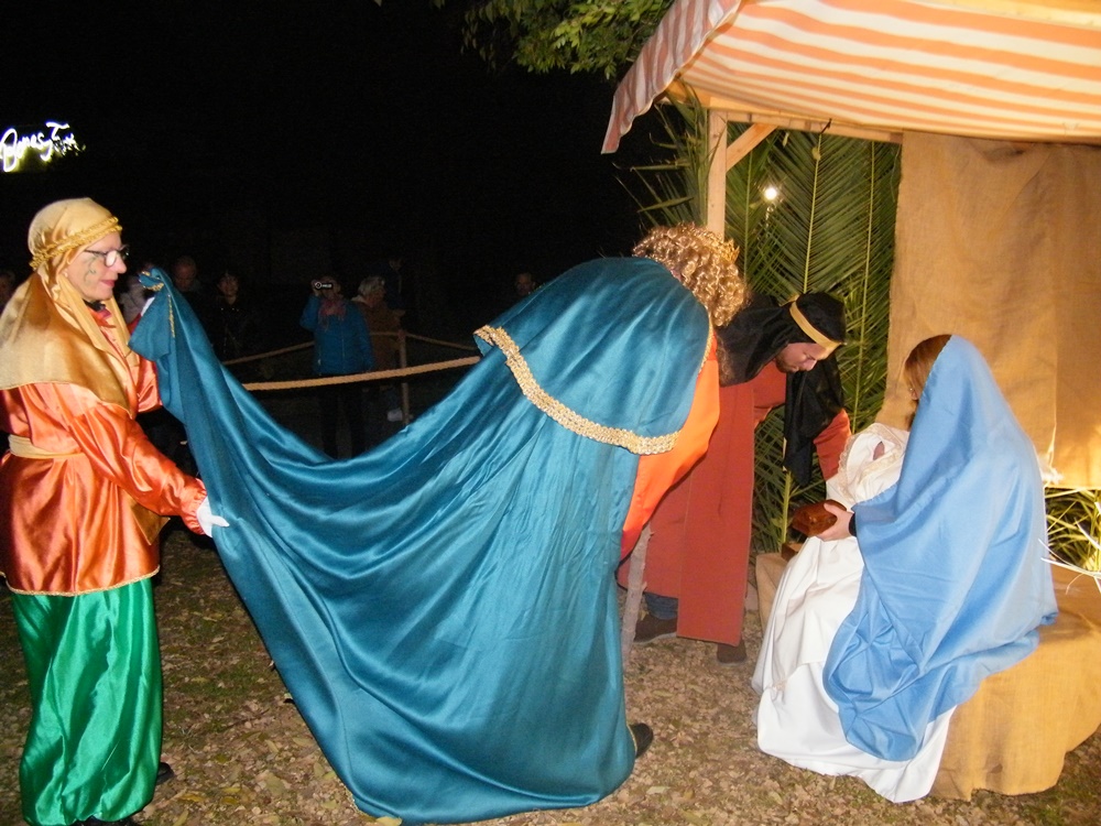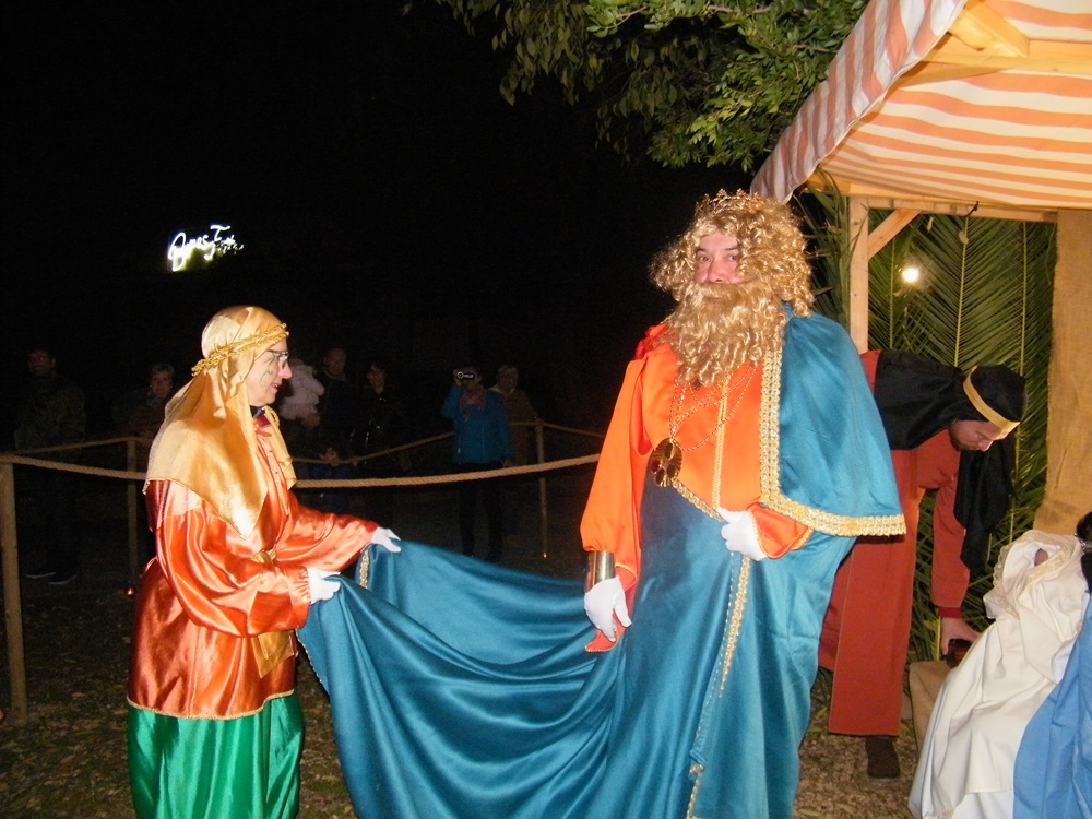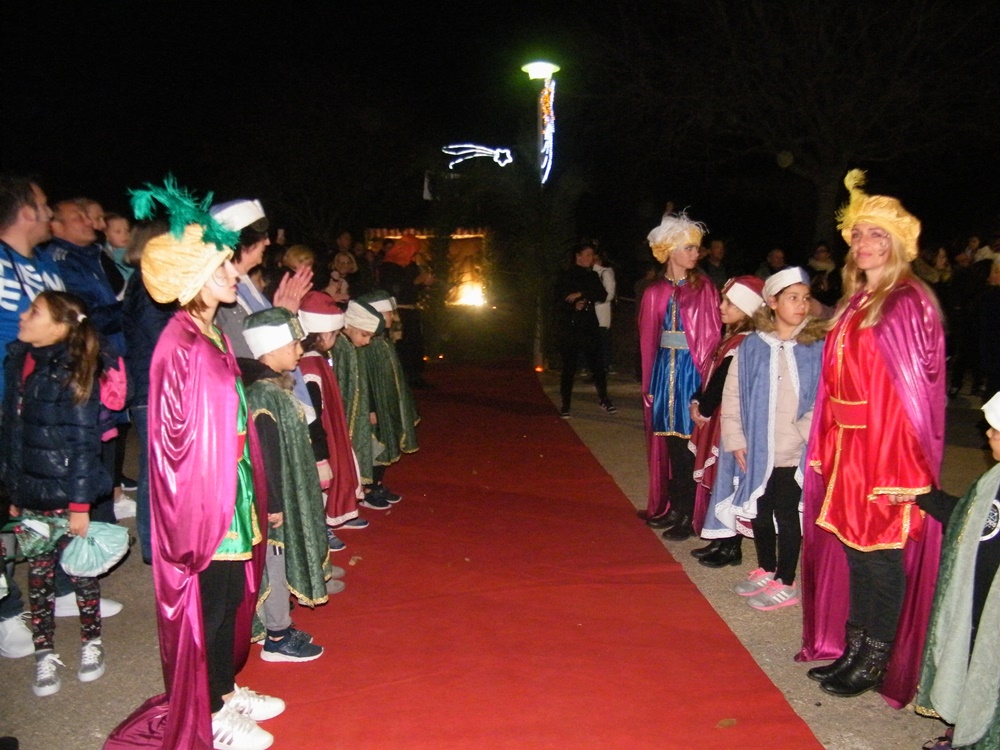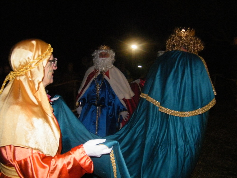 La banda de música precedia a la comitiva que va acompanyar als Reis fins a la plaça de l’Església, on les Reials Majestats adoraren el Nin Jesús al tradicional Betlem Vivent de sa Coma, i li van oferir, or, encens, i mirra.