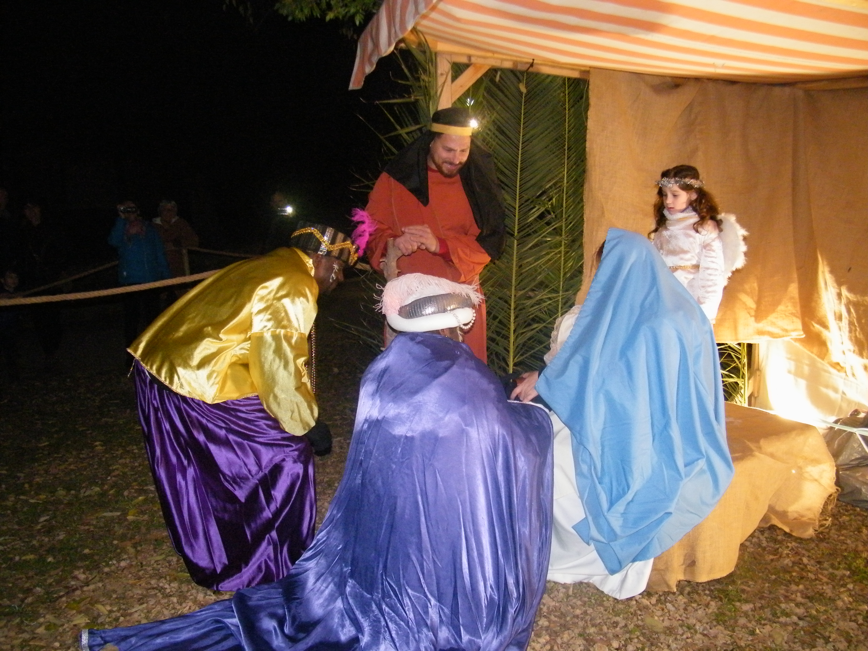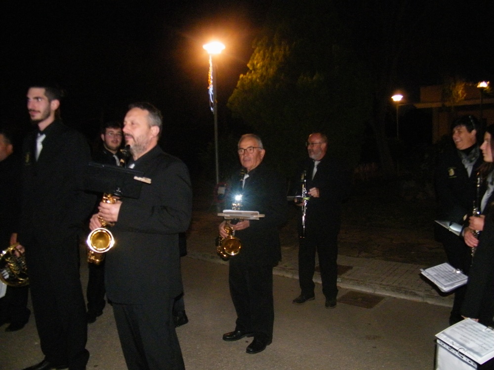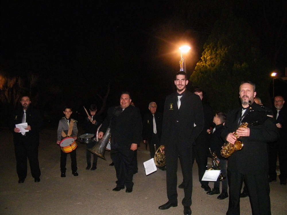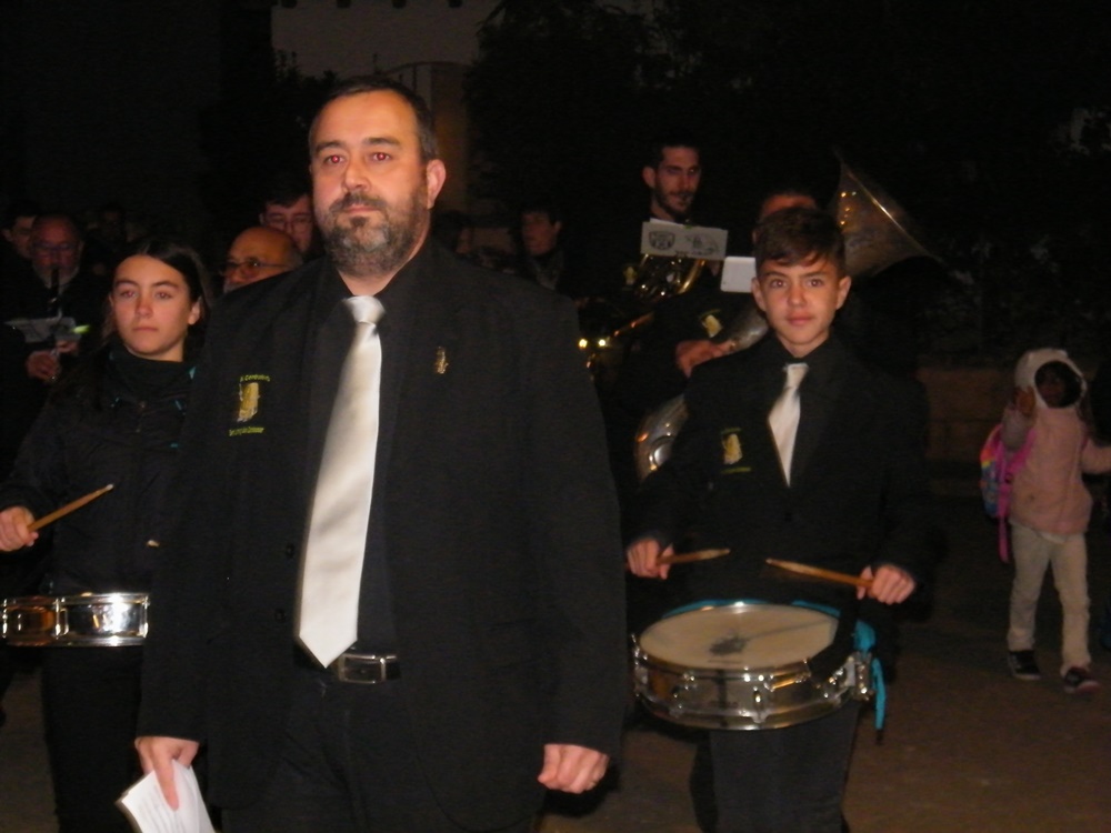 La banda de música precedia a la comitiva que va acompanyar als Reis fins a la plaça de l’Església, on les Reials Majestats adoraren el Nin Jesús al tradicional Betlem Vivent de sa Coma, i li van oferir, or, encens, i mirra.