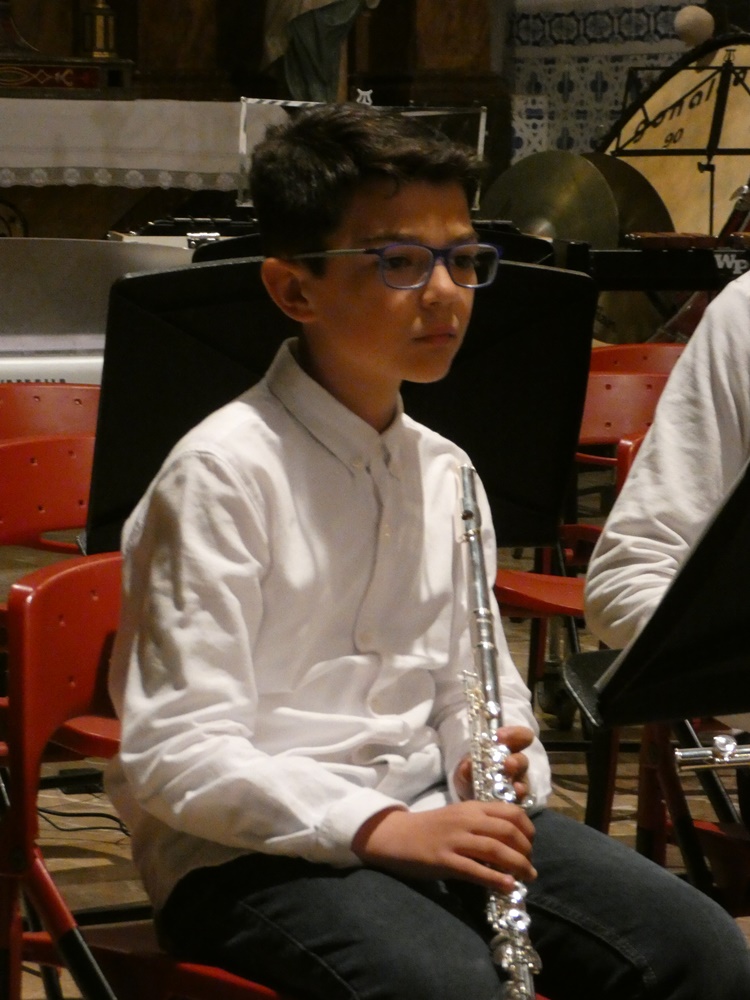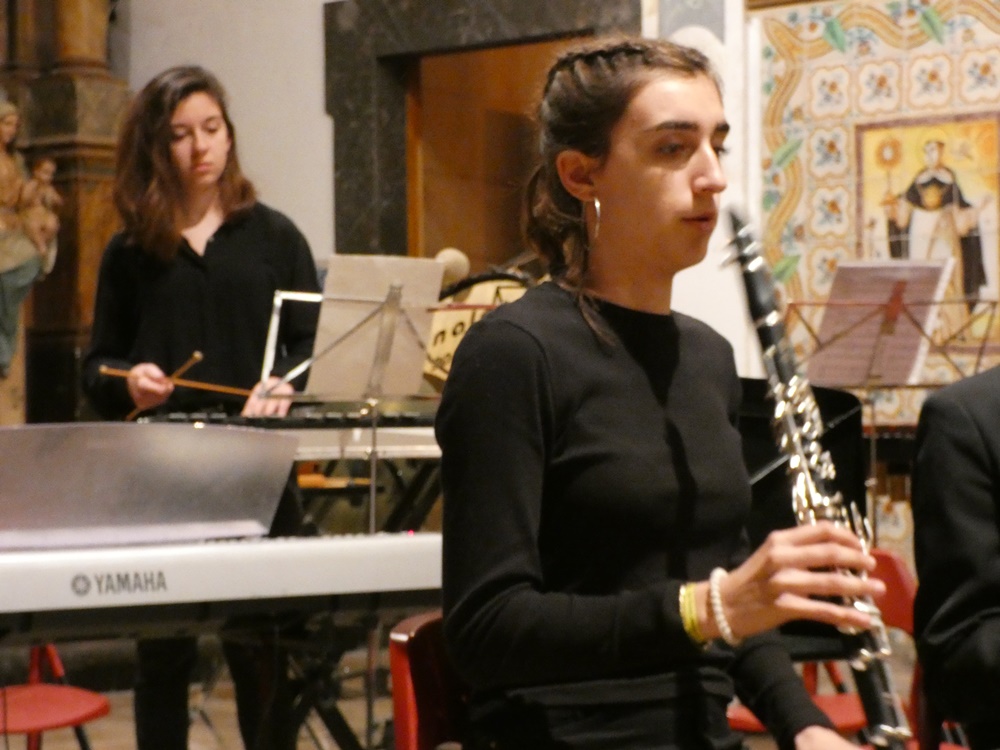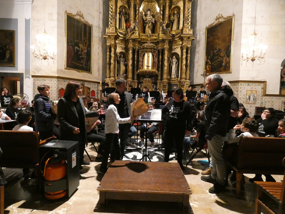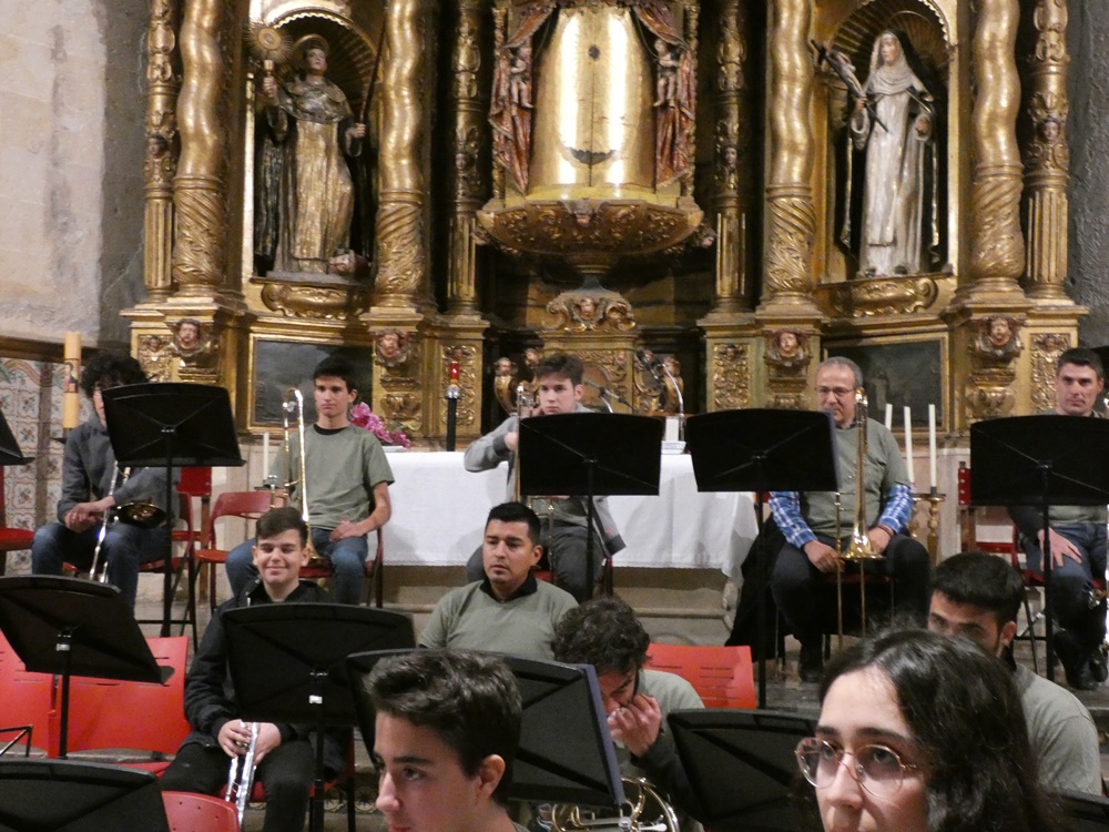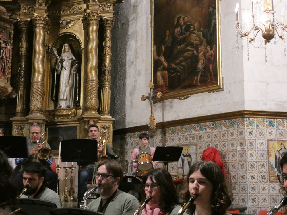 El director de la banda convidada, Pere Bono, va dirigir a primera peça, Concerto d’Amore de Jacob de Haan, i Antònia Bassa, Pompeia de Hugo Chinesta, la directora va confiar el solo de trompa a la component de la Banda Jove, Maria Ferriol de 10 anys, que es va mostrar molt segura, i decidida, fent una molt bona actuació.