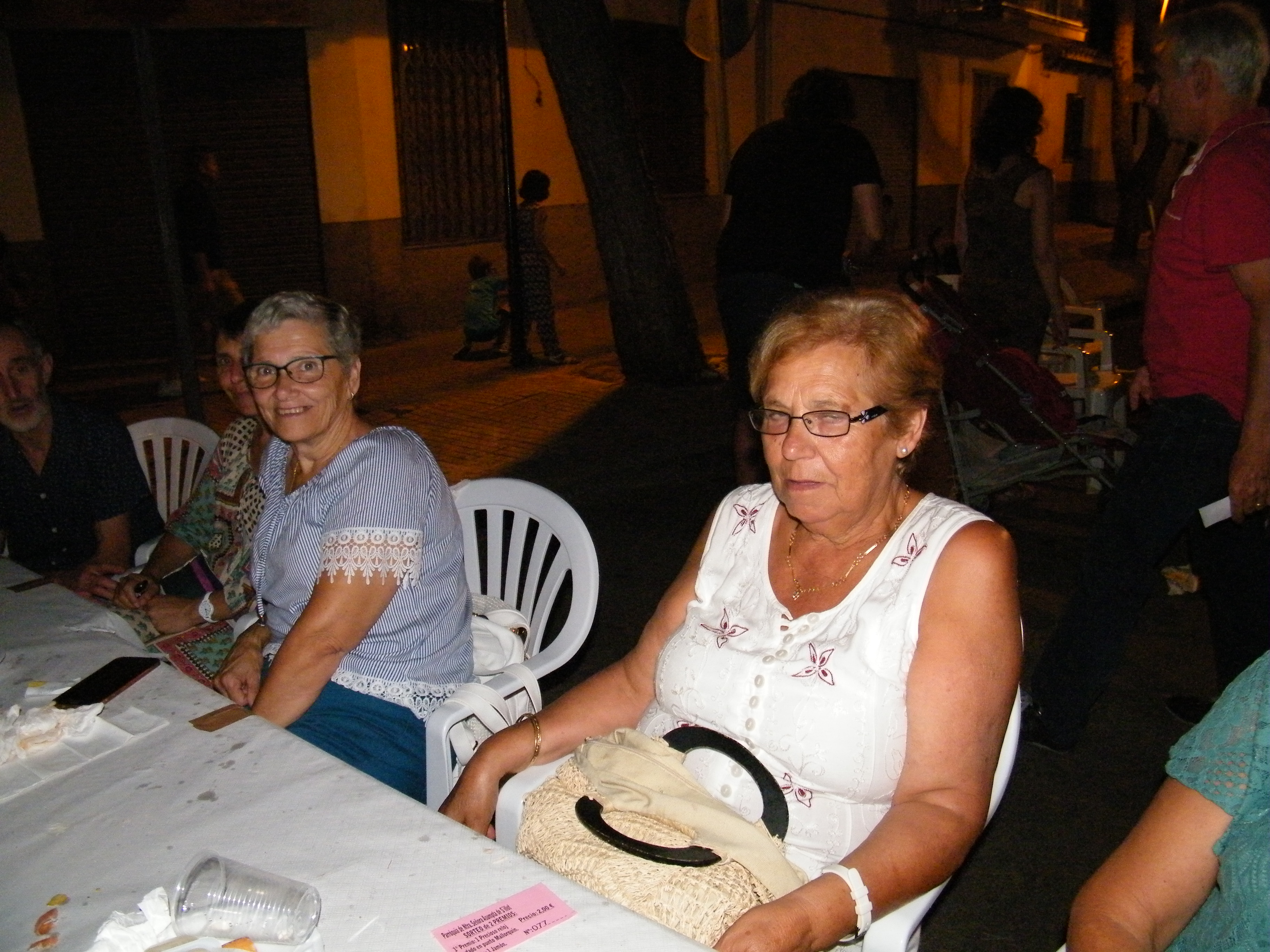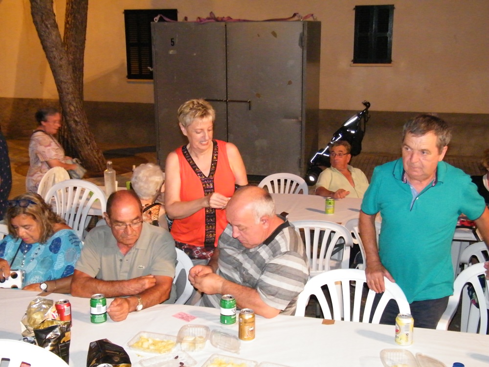Acabades de servir les gambes ja és posaren a servir el gelat i la coca de quarto, mentre que el rector de s’Illot Fra Pere Vallespir, va procedir a fer un sorteig per a poder arreglar les vidrieres de les portes de la parròquia; es va rifà un bon «jamón pata negra», i un rellotge fet a mà de punt mallorquí. Es van recaptar 800 euros.