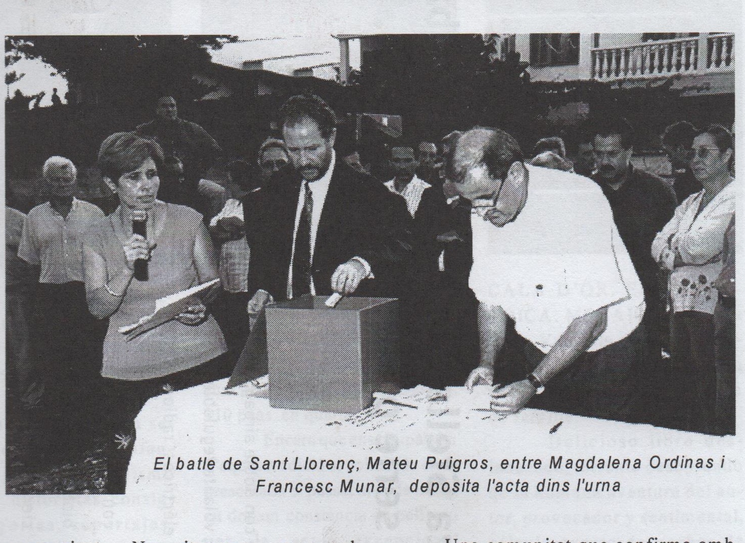 A les set de l’horabaixa la comissió per les obres de l’església, donà la benvinguda als assistens. El rector mossèn Francesc Munar, va llegir el document que donava fe de l’acte, que fou signat per l’arquitecte autor del projecte Joan Blanes, (si bé unes reformes i ampliacions al projecte inicial, i el seguiment de les obres van anar a càrrec de l’arquitecte municipal, Agustí Buades, i l’aparelladora Maria Antònia Soler), fou signat a més, en nom de la família que va regalà el solar, Antònia Maria Llinàs, pel batle Mateu Puigrós, el aleshores delegat de sa Coma, Joan Santandreu, en representació del Bisbat els Vicaris Episcopals mossèn Jaume Alemany, i mossèn Joan Servera, el rector mossèn Francesc Ramis, i en representació dels veïns de sa Coma, Magdalena Ordinas.