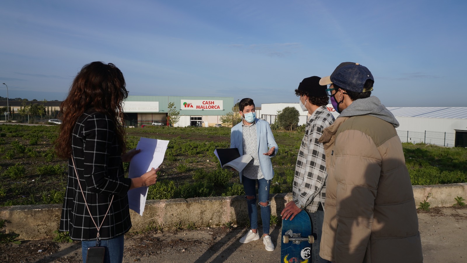 El delegat d’Esports, Artur Aguiló, s’ha reunit aquest dimecres matí amb els skaters Biel Brunet Riera i Tomeu Frau als terrenys on s’ubicarà la nova instal·lació esportiva municipal per explicarlos els detalls del projecte després que els esportistes varen ser convidats a participar-hi. A la trobada també hi ha assistit la delegada d’Urbanisme, Núria Hinojosa.