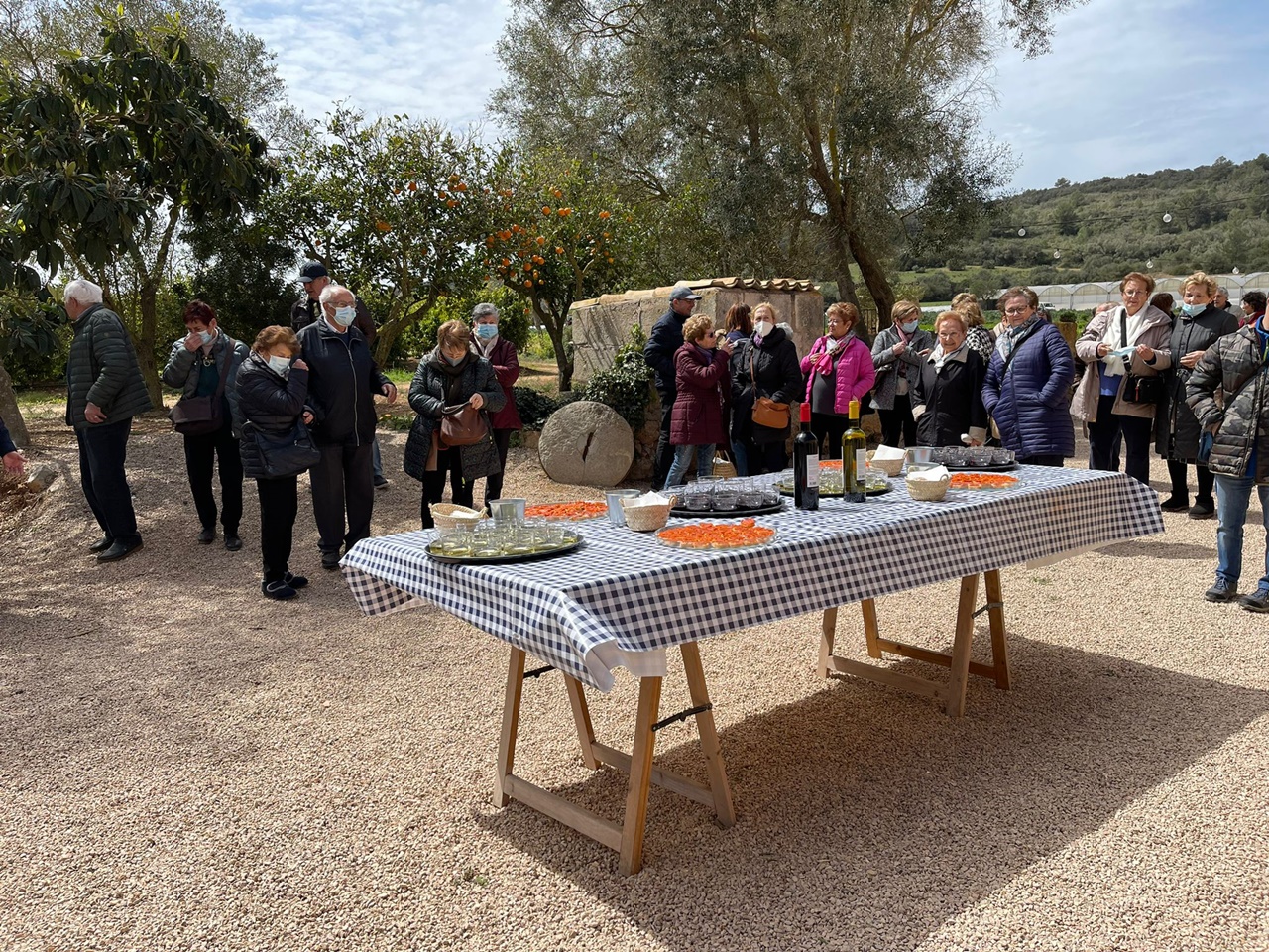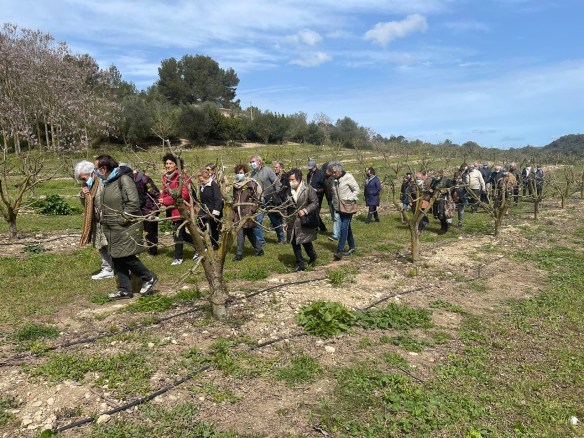 Després de més d’una hora de visita, els participants es desplaçaren fins a s’Hort de sa Vall, on la família que explota la finca els explicà tots els detalls de l’hort, els arbres fruiters i els processos de sembra i de collita que duen a terme. En haver acabat, gaudiren d’un dinar amb productes de la finca.