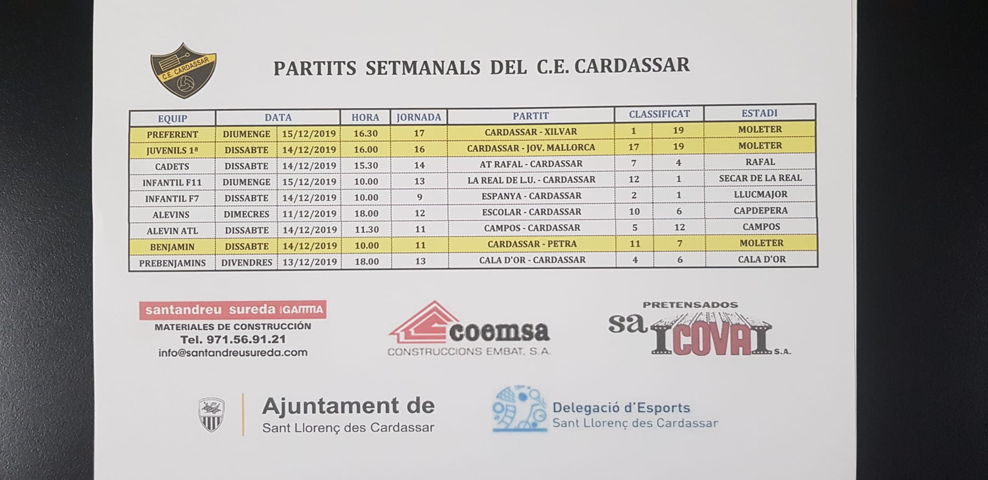 Propers partits de totes les categories del CD Cardassar