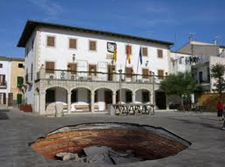 Sant Llorenç s’enfonsa!! Aquest matí hem descobert amb gran sorpresa aquest enorme forat a la plaça de l’ajuntament. Continua