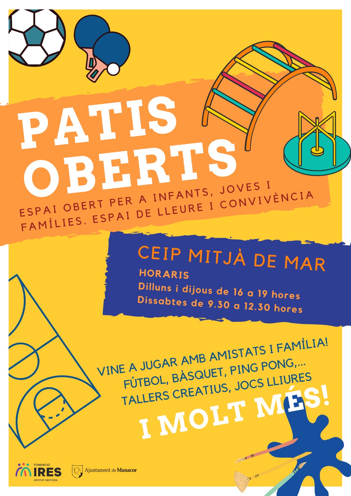 L’Ajuntament de Manacor recupera el projecte ‘Patis Oberts’ al CEIP Mitjà de Mar de Porto Cristo amb l’objectiu que les famílies, i sobretot la població infantil i juvenil, resident a Porto Cristo i també a la resta del municipi, guanyi un espai de lleure i garantint-ne l’ús cívic d’aquest espai. Continua