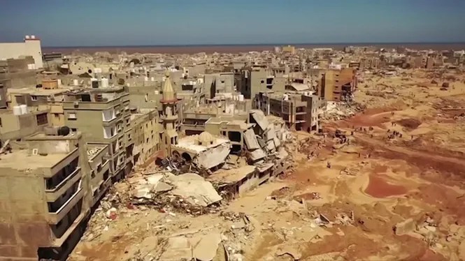 Derna ha quedat arrassada pel cicló Daniel. Una quarta part de la ciutat no existeix. Hi ha 11.000 morts i prop de 20.000 desapareguts engolits per 33 milions de litres d’aigua que s’abocaren de cop al cabal del riu.