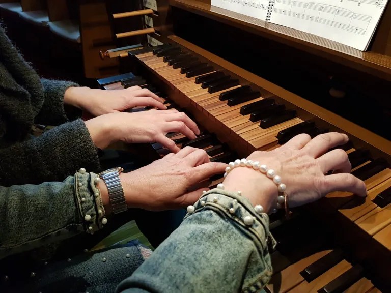 L’organista titular de Santanyí, Francesca Suau, va ser la convidada a interpretar peces a quatre mans amb Bàrbara Duran. Continua