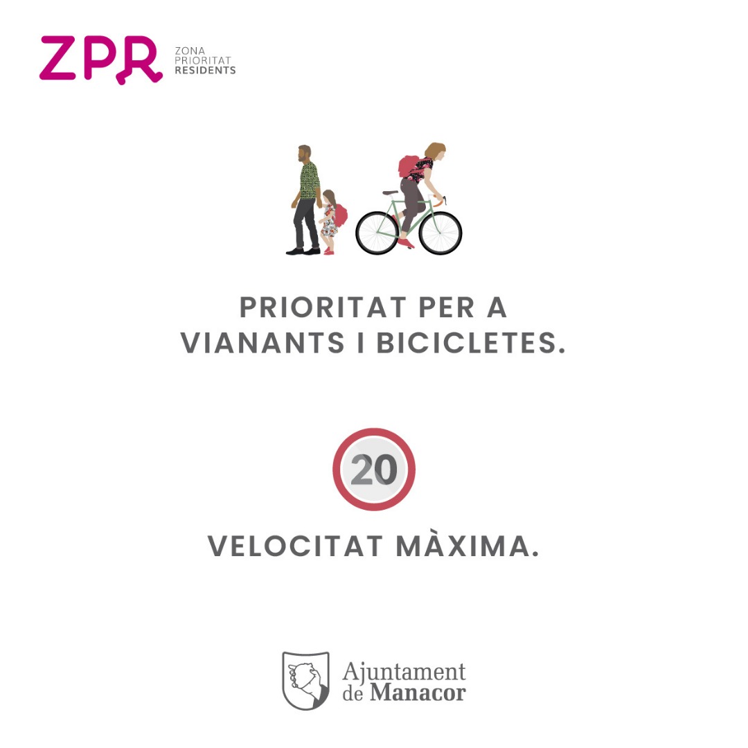 Comunicat.El departament de Medi Ambient i Mobilitat de l’Ajuntament de Manacor du a terme tasques informatives a ciutadans i comerciants sobre la Zona de Prioritat per a Residents del centre de Manacor, una mesura que pacificarà el trànsit a 67 carrers del centre de la ciutat a partir del 15 de març. La ZPR promou una mobilitat segura i sostenible, ja que en aquesta àrea la prioritat de pas serà dels vianants en primer lloc i de les bicicletes i vehicles de mobilitat personal en segon lloc, sempre per davant de qualsevol vehicle motoritzat. Continua